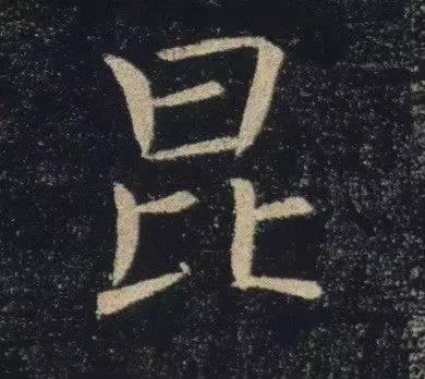 此碑中字很難找到平直的筆畫,每一筆都通過跳躍的用筆節奏展示筆畫的豐富姿態,這一點,隨便找出一個字都可以感受到。有人說他追求的是"唯美",倒也不為過。我們看"鹿",可以想見每一筆的提按動作,筆畫姿態的豐富。"昆"也是同樣的效果,"橫折豎"必然要有豐富的節奏變化,此一筆要高出《陰符經》很多。